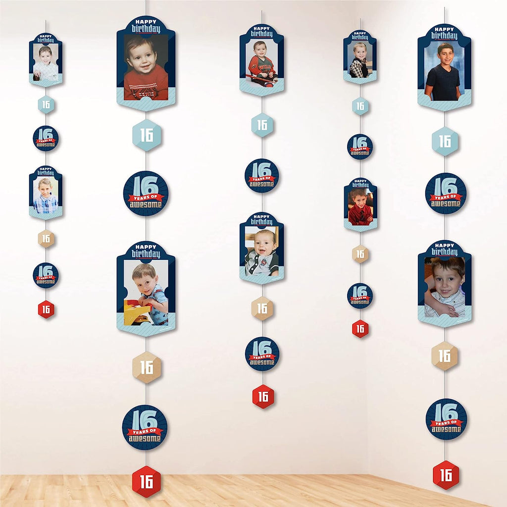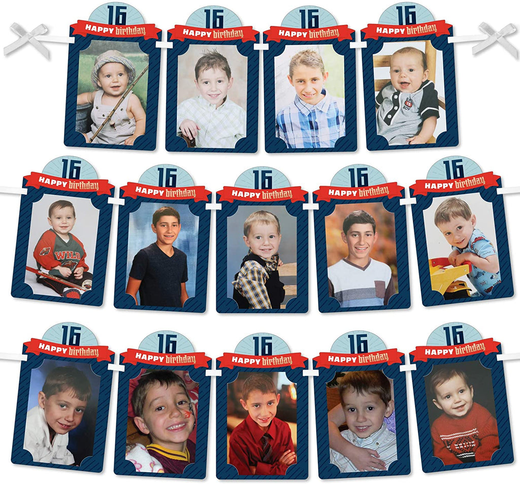 Boy 16th Birthday - Sweet Sixteen Birthday Party Vertical Photo Garland 35 Pieces