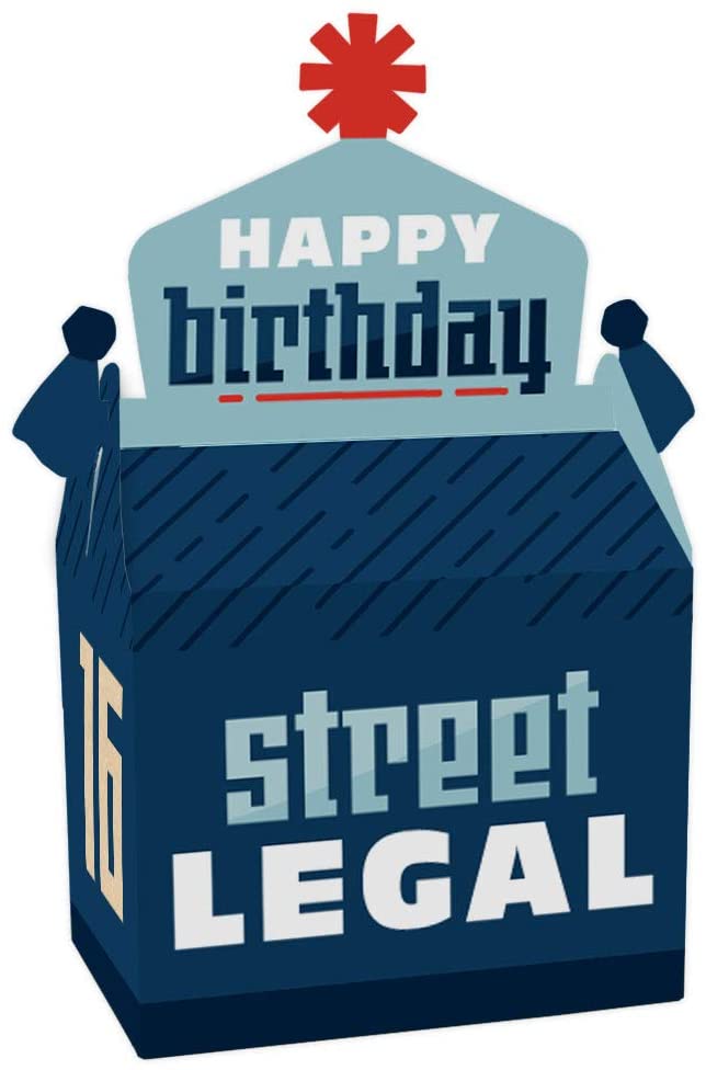 Boy 16th Birthday - Treat Box Party Favors - Sweet Sixteen Birthday Party Goodie Gable Boxes - Set of 12