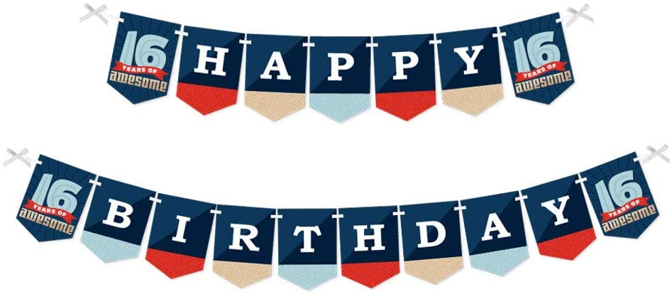 Boy 16th Birthday - Sweet Sixteen Birthday Party Bunting Banner - Birthday Party Decorations - Happy Birthday