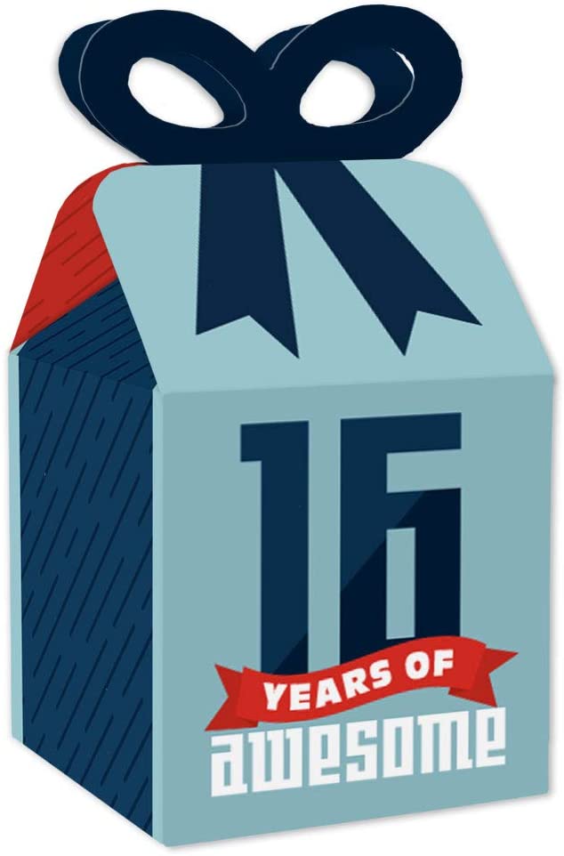 Boy 16th Birthday - Square Favor Gift Boxes - Sweet Sixteen Birthday Party Bow Boxes - Set of 12
