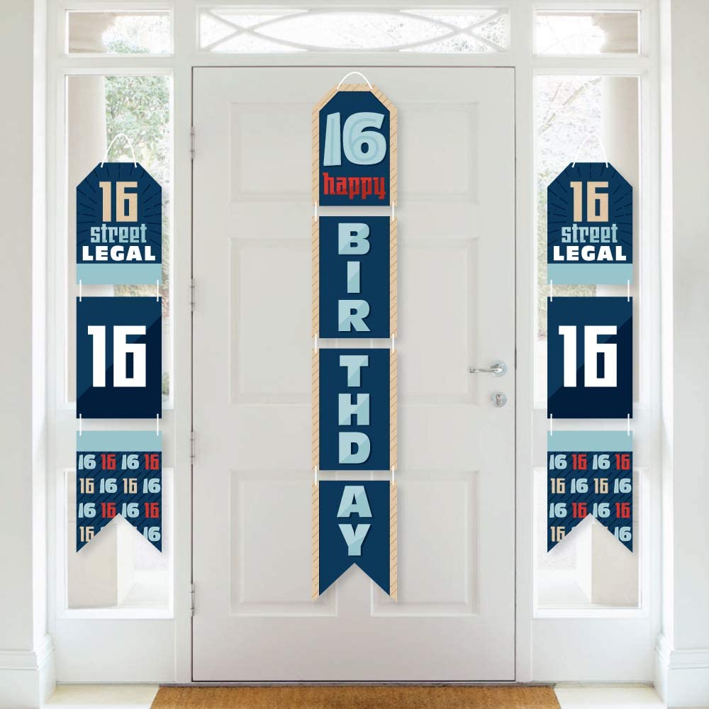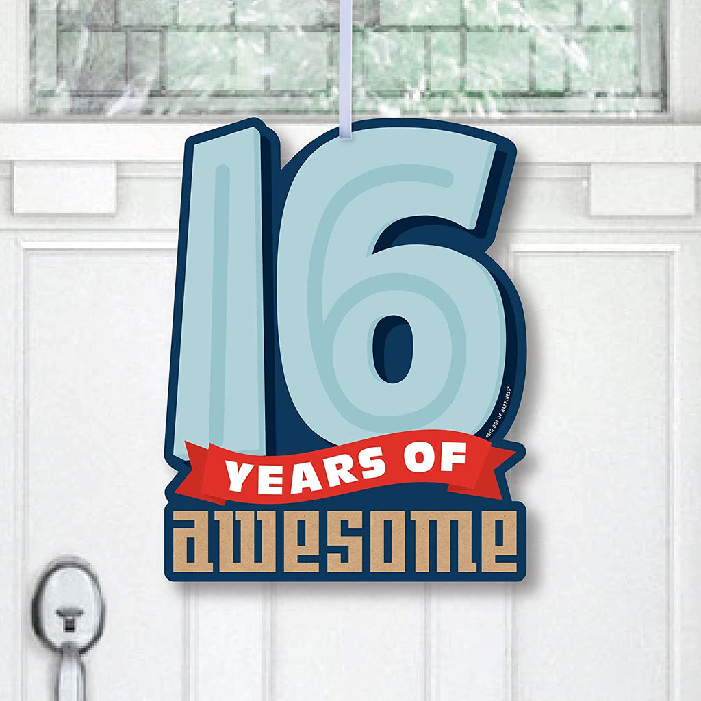 Boy 16th Birthday - Hanging Porch Sweet Sixteen Birthday Party Outdoor Decorations - Front Door Decor - 1 Piece Sign