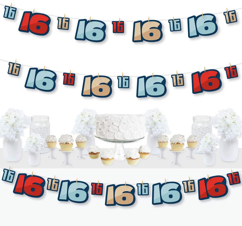 Boy 16th Birthday - Sweet Sixteen Birthday Party DIY Decorations - Clothespin Garland Banner - 44 Pieces