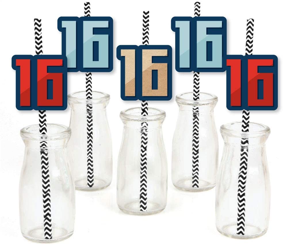 Boy 16th Birthday - Paper Straw Decor - Sweet Sixteen Birthday Party Striped Decorative Straws - Set of 24