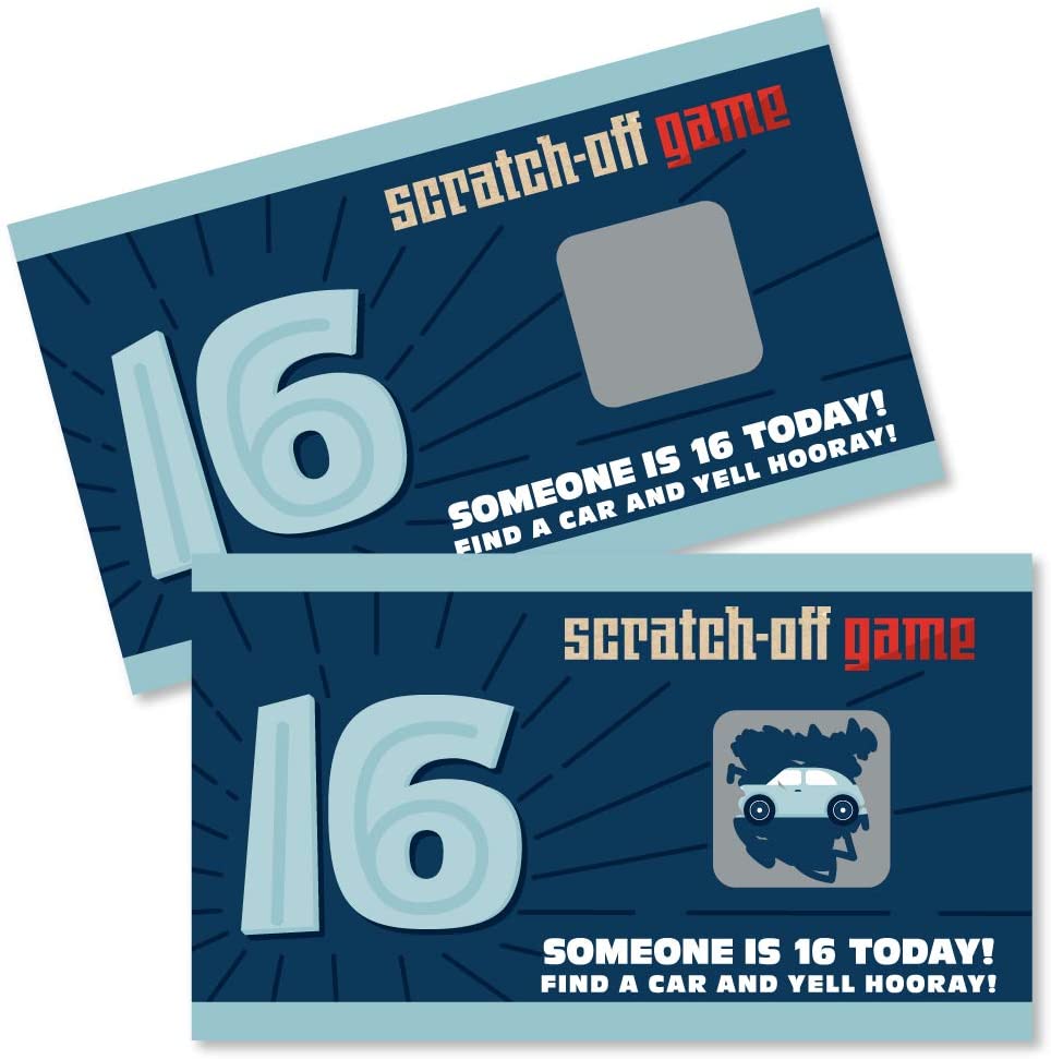 Boy 16th Birthday - Sweet Sixteen Birthday Party Game Scratch Off Cards - 22 Count