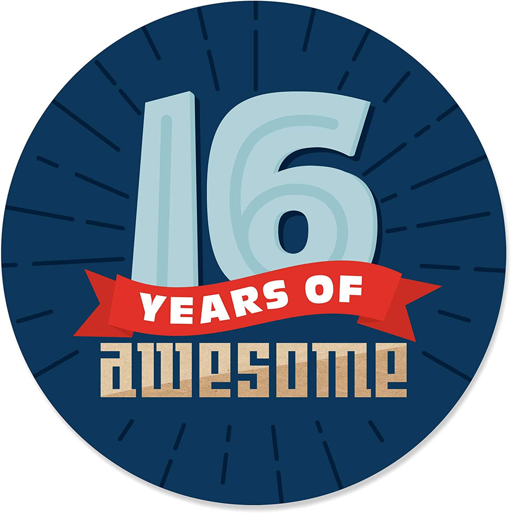 Boy 16th Birthday - Sweet Sixteen Birthday Party Circle Sticker Labels - 24 Count