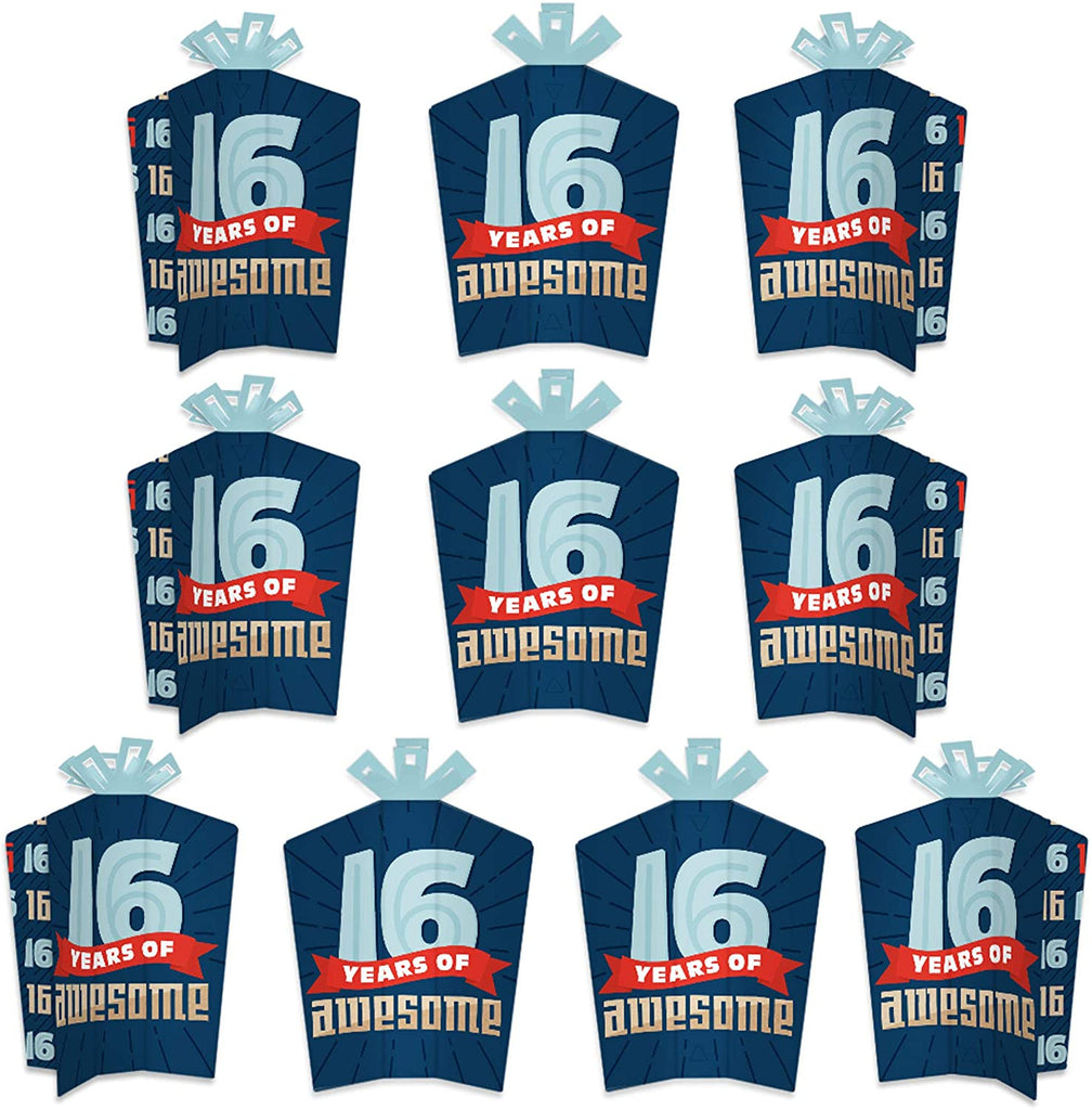 Boy 16th Birthday - Table Decorations - Sweet Sixteen Birthday Party Fold and Flare Centerpieces - 10 Count