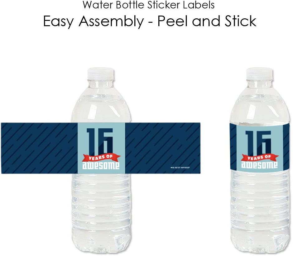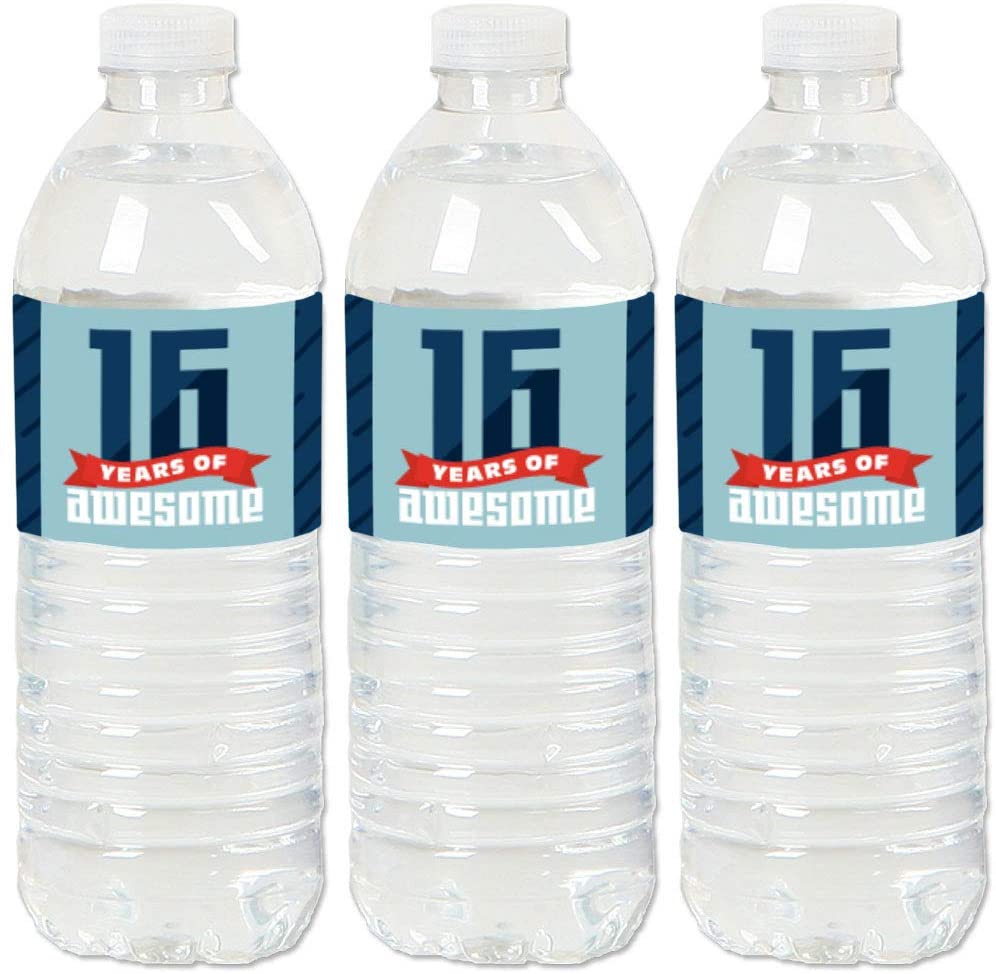 Boy 16th Birthday - Sweet Sixteen Birthday Party Water Bottle Sticker Labels - Set of 20 is backordered and will ship as soon as it is back in stock.