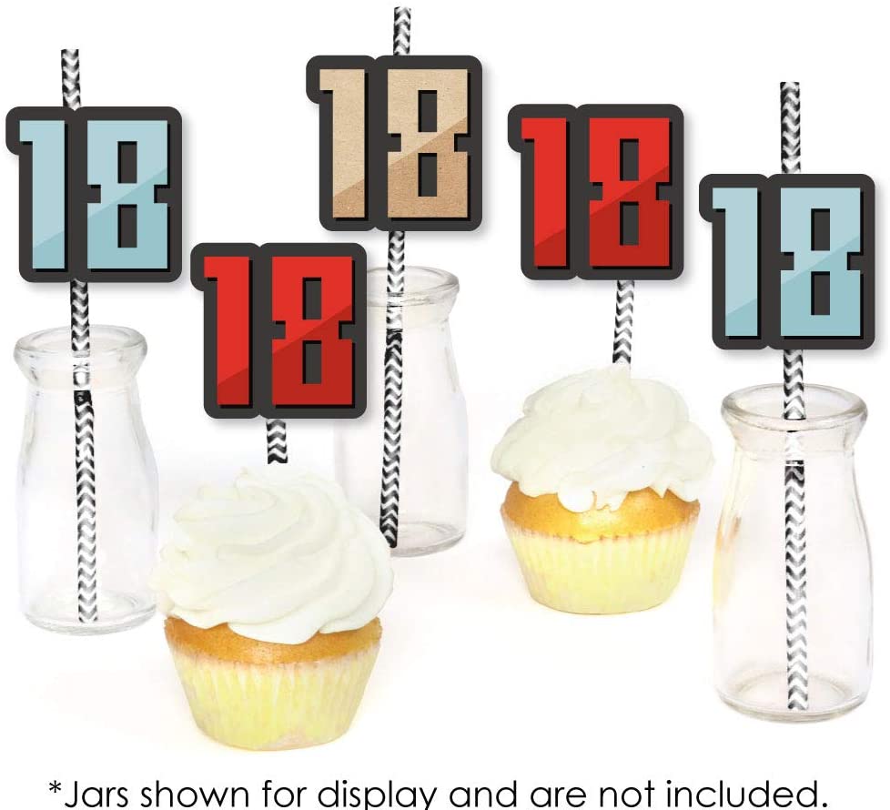 Boy 18th Birthday - Paper Straw Decor - Eighteenth Birthday Party Striped Decorative Straws - Set of 24 is backordered and will ship as soon as it is back in stock.