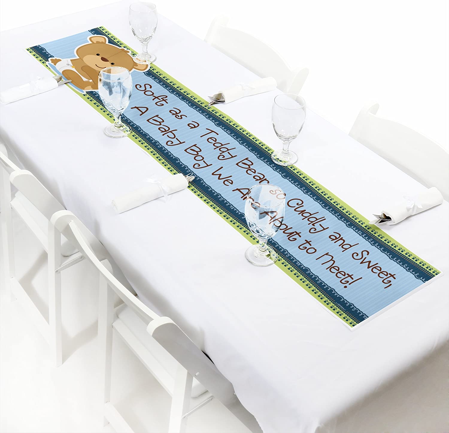 • BABY SHOWER DECORATIONS: A Boy Baby Teddy Bear Baby Shower Banner is an easy way to decorate for your party and bring your baby cub theme to life. Hang at the entrance of your baby shower, over the food table or candy buffet, at the gift table or behind the dining table. Boy Baby Teddy Bear Baby Shower Banners are also great when displayed outdoors to welcome all of your baby shower party guests as they arrive.