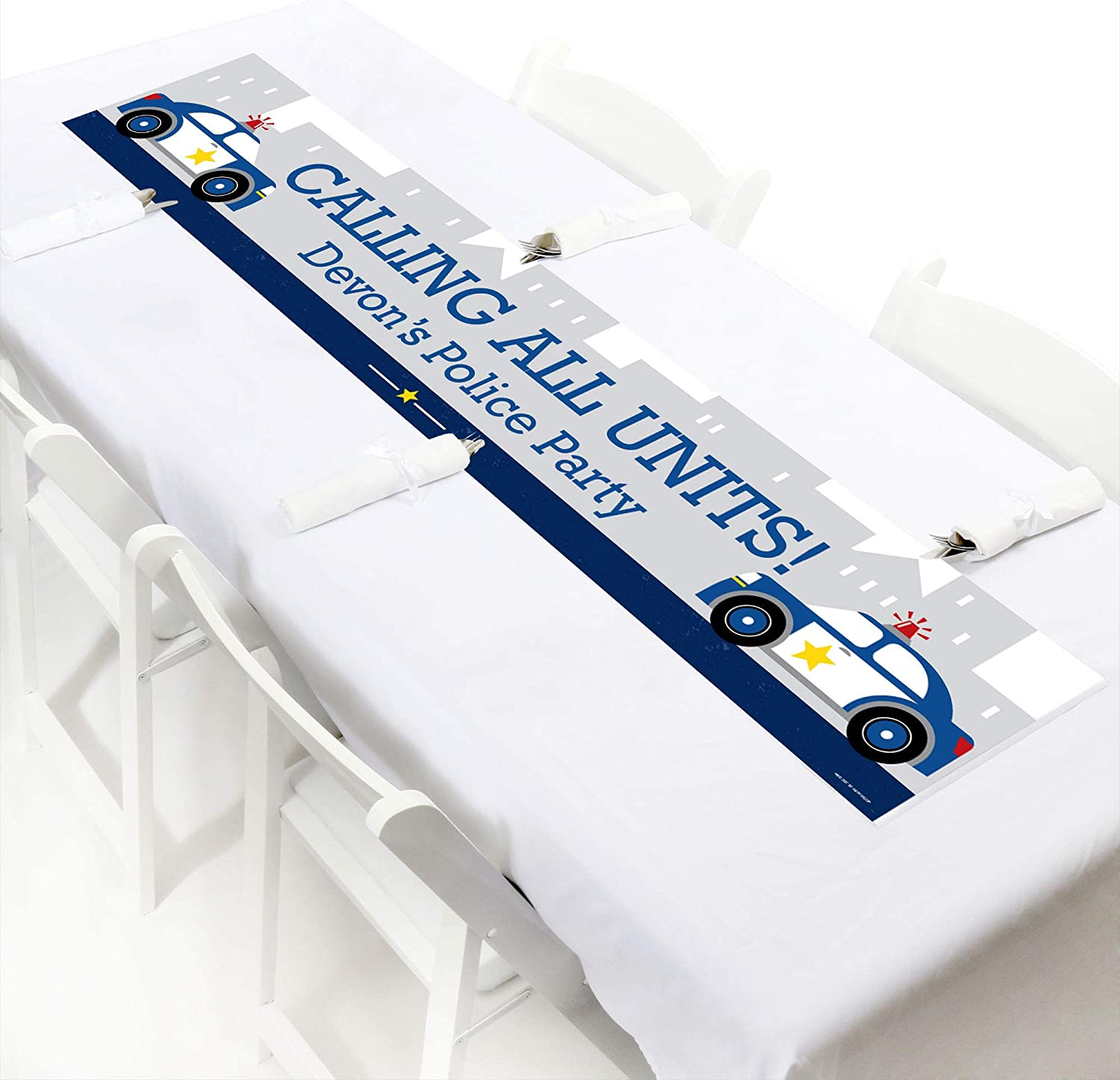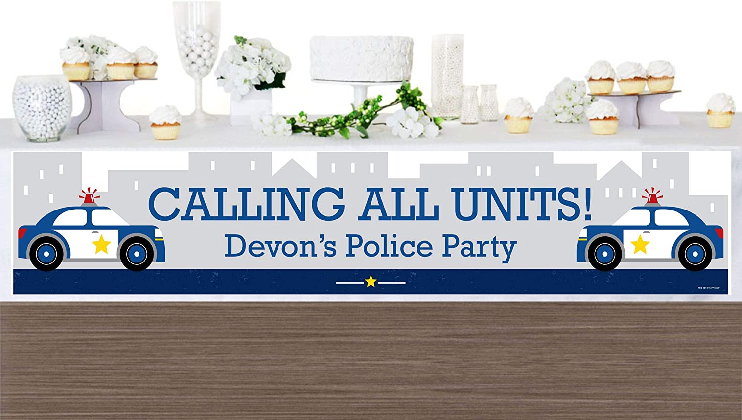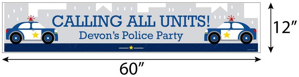 • SIZE: Calling All Units - Police custom banner measures 1 foot by 5 feet. PERSONALIZED PARTY SUPPLIES: Calling All Units - Police party banners feature your custom text. Simply click "Customize Now" to add your personalized text to this cute party banner.