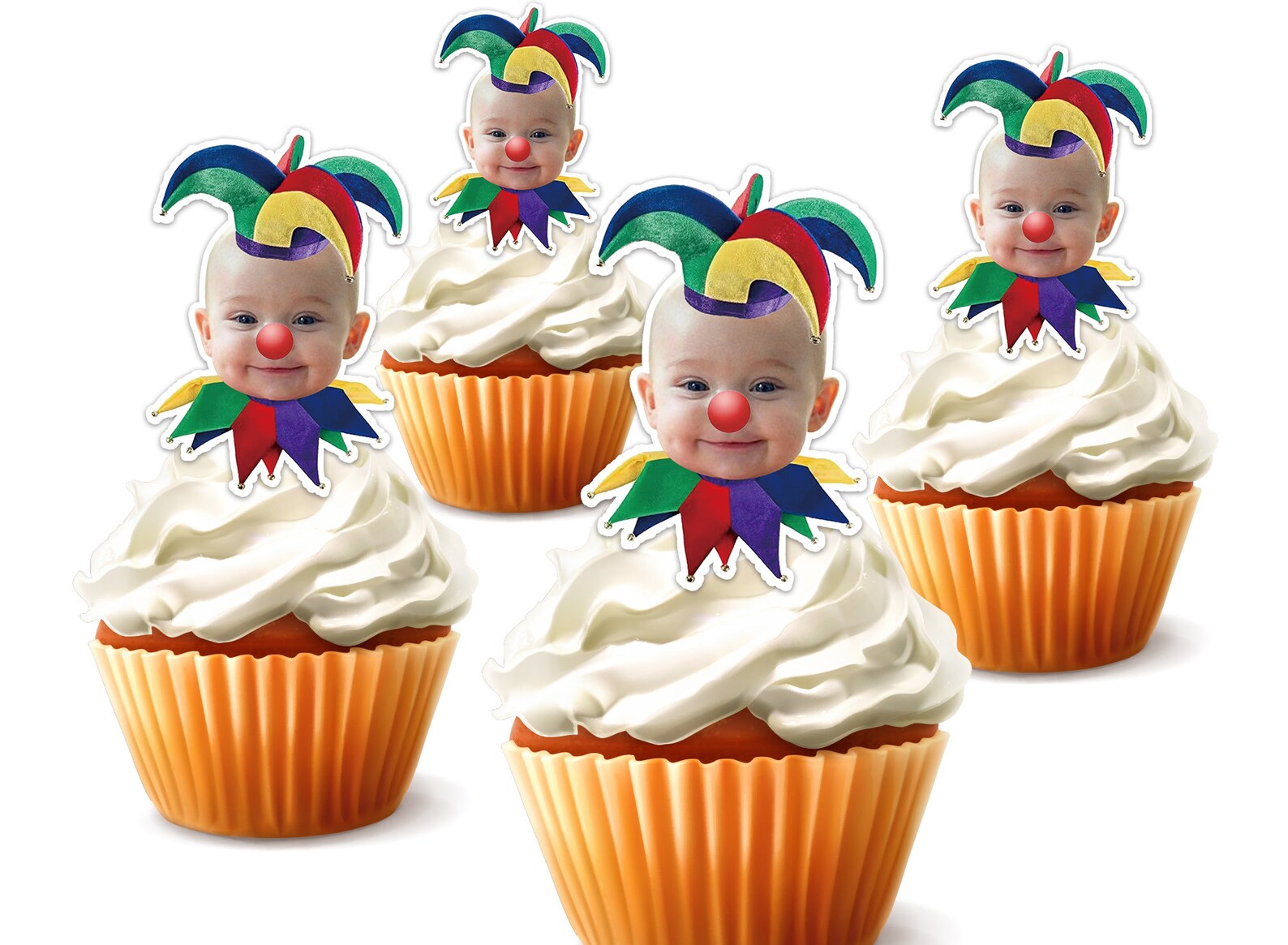 Circus Clown - Cupcake Decoration - Custom Photo Circus Clown and Treat Picks Kit - Set of 18 is backordered and will ship as soon as it is back in stock.