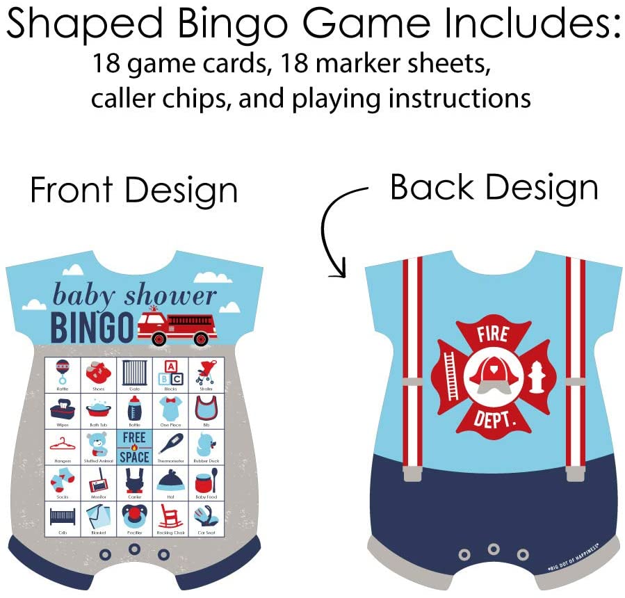 • MUST-HAVE PARTY SUPPLY: Bingo is an easy and classic baby shower game that everyone will have fun playing. Fired Up Fire Truck - Shaped Picture Bingo Cards and Markers give this classic game a fresh look with baby bodysuit-shaped playing cards and baby related pictures instead of numbers.