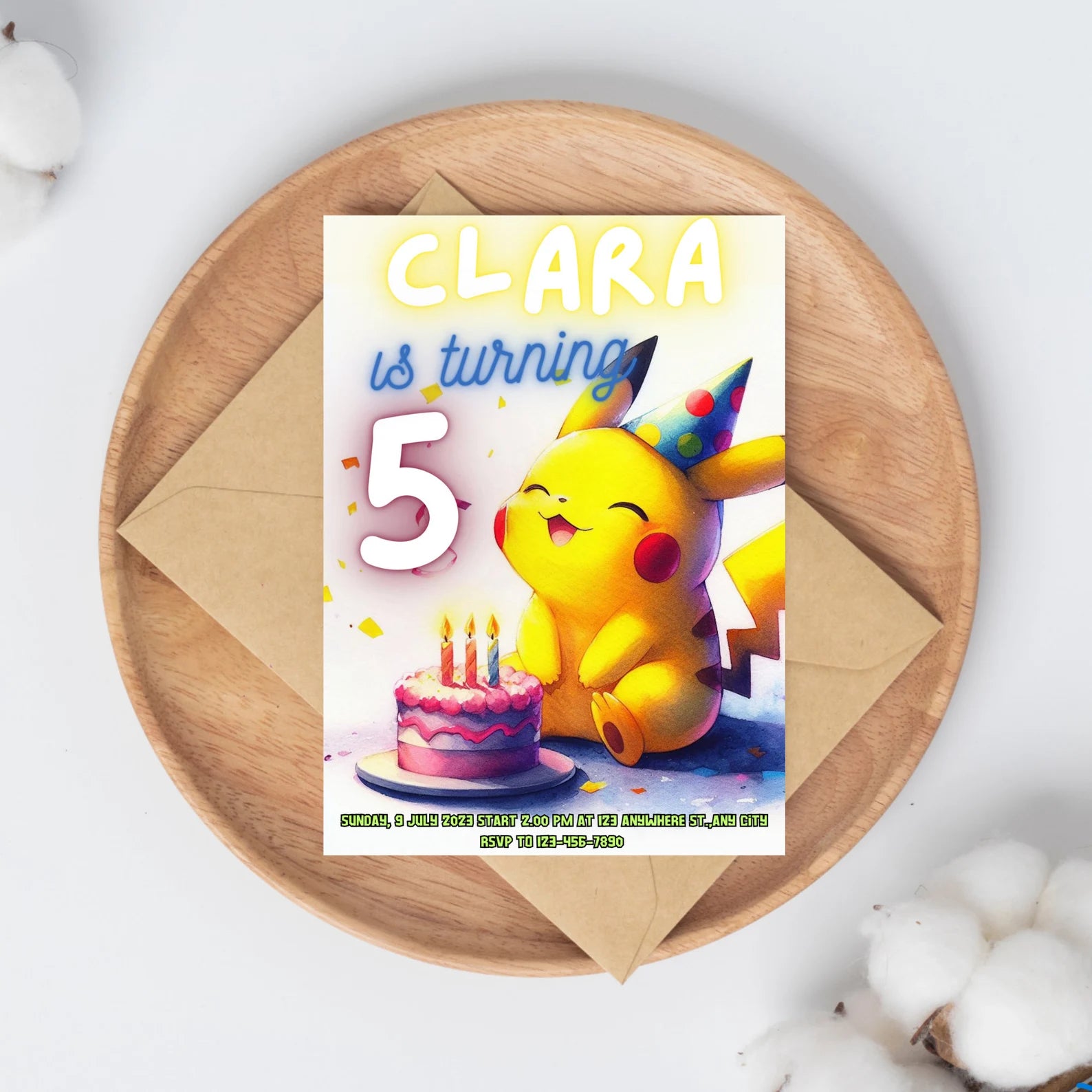 Custom Pokemon Birthday Party Invitation Cards (8 count)