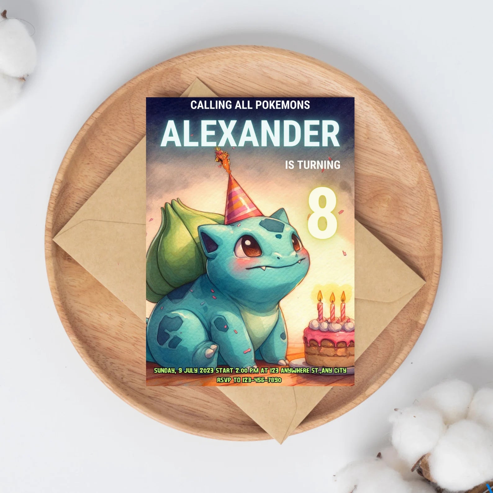 Custom Pokemon Birthday Party Invitation Cards (8 count)