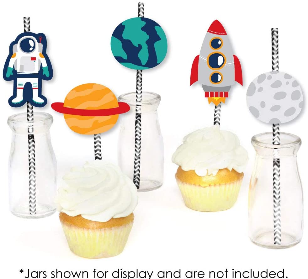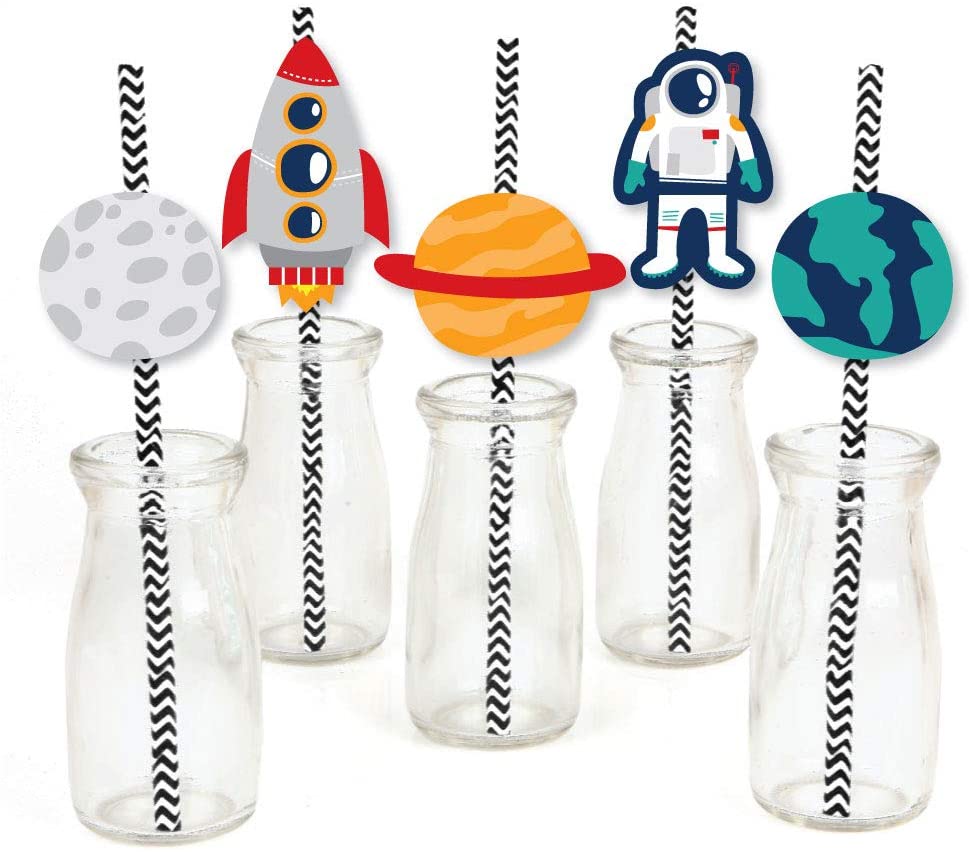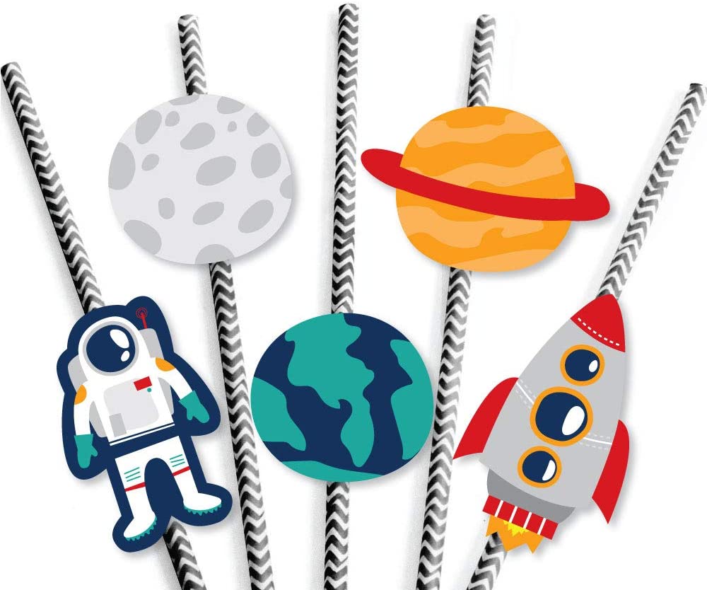 Blast Off to Outer Space - Paper Straw Decor - Rocket Ship Baby Shower or Birthday Party Striped Decorative Straws - Set of 24 is backordered and will ship as soon as it is back in stock.