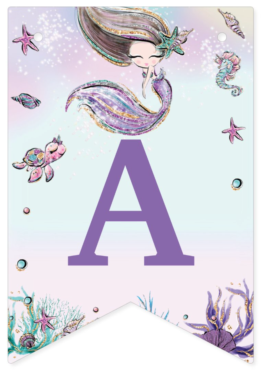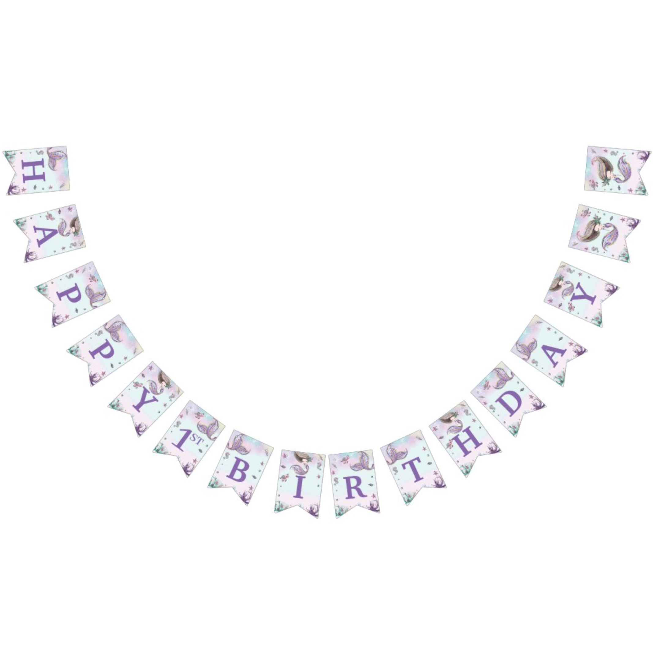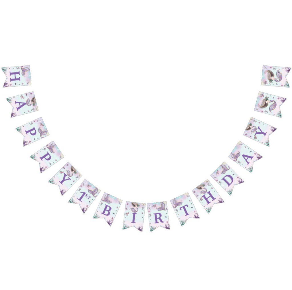 Whimsical Mermaid Under the Sea Birthday Party Bunting Flags