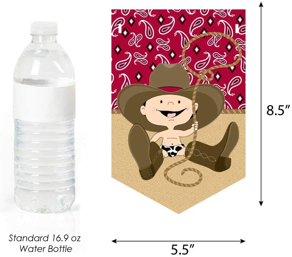 • PREMIUM WESTERN PARTY SUPPLIES: Little Cowboy Bunting Banner is professionally printed on sturdy cardstock paper. Each pennant is individually inspected then carefully packaged by hand. baby shower or birthday party bunting banners requires some easy assembly. Following the number sequence on the back of each pennant, simply string the included satin ribbon through the pennant slots. Create multiple rows by cutting the ribbon to your desired length or hang as one long banner.