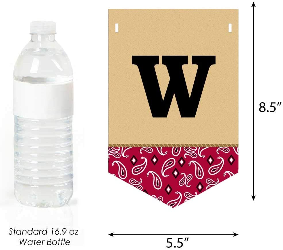 • Western baby shower or birthday party Bunting Banners SIZE: Each pennant measures 8.5 inches high x 5.5 inches wide. Ribbon measures 24 feet long and 3/8 inch wide.