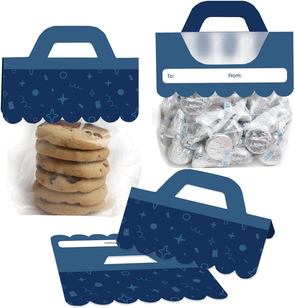 Navy Confetti Stars - DIY Simple Party Clear Goodie Favor Bag Labels - Candy Bags with Toppers - Set of 24