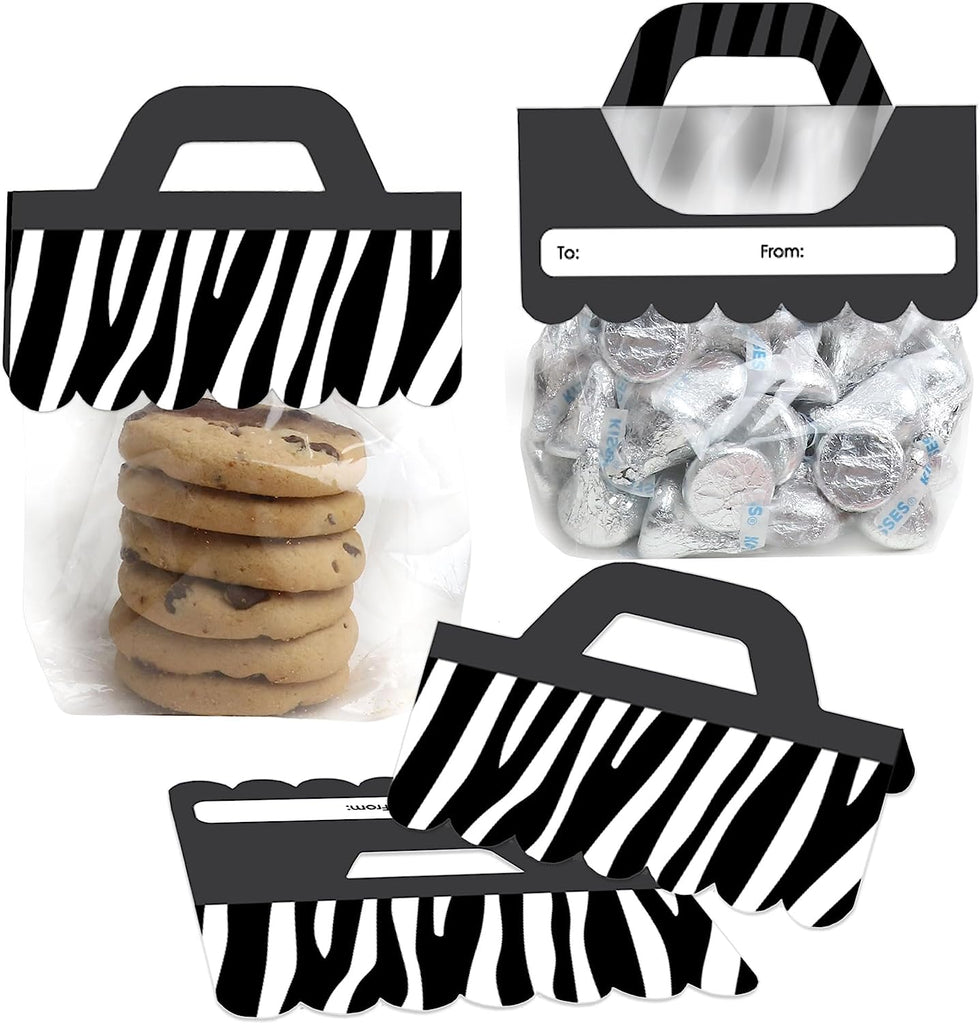 Zebra Print - DIY Safari Party Clear Goodie Favor Bag Labels - Candy Bags with Toppers - Set of 24