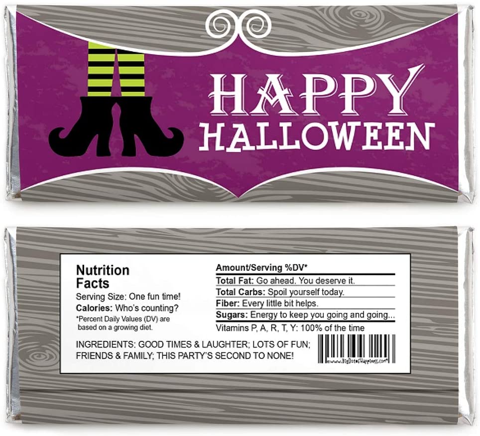 • Happy Halloween Standard Candy Bar Wrapper Kit INCLUDES 24 chocolate bar wrappers and 24 foils, perfect for styling an adorable witch candy buffet or unique Halloween or birthday party favors.