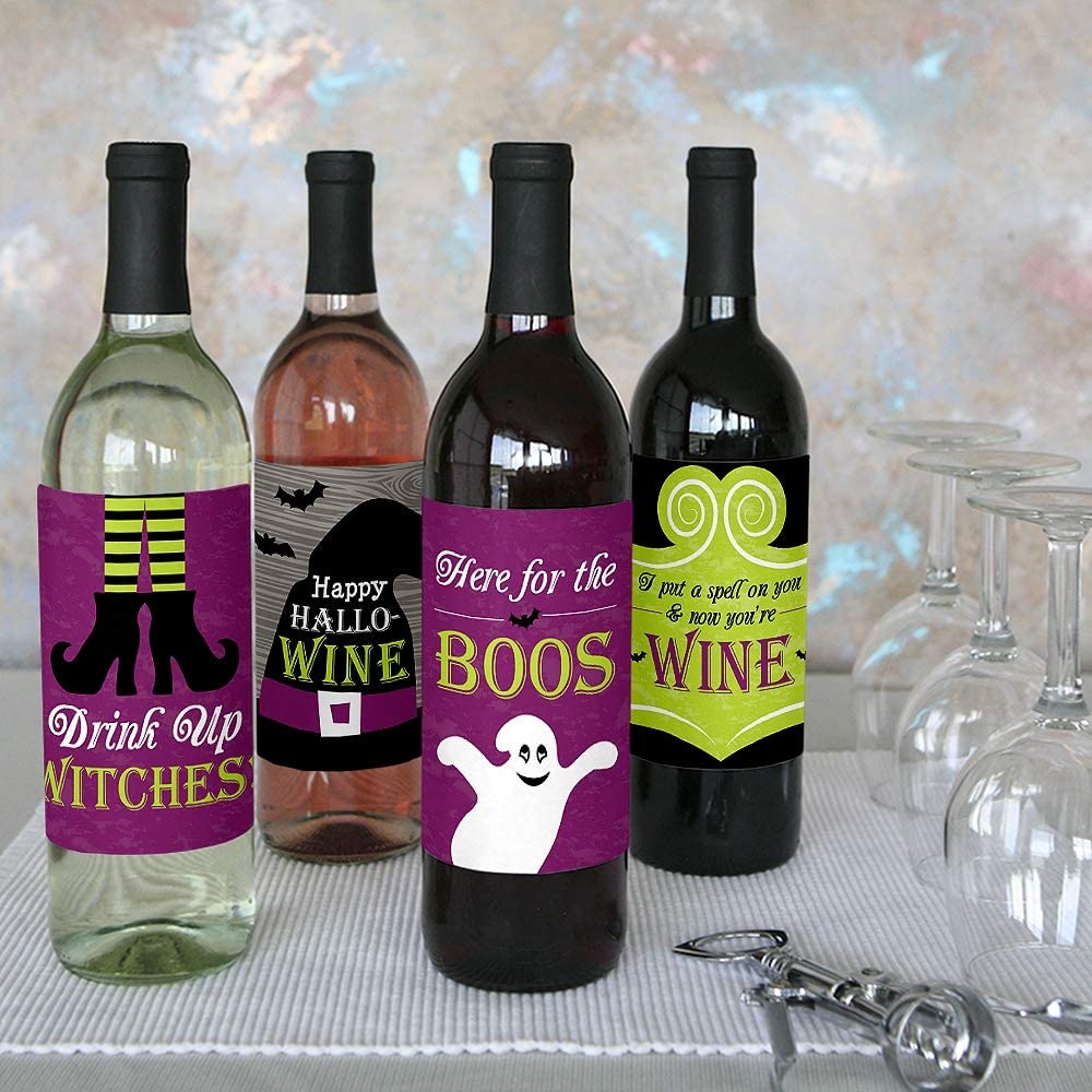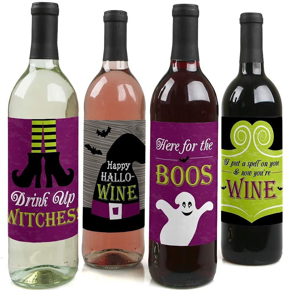 Happy Halloween - Witch Party Decorations for Women and Men - Wine Bottle Label Stickers - Set of 4 is backordered and will ship as soon as it is back in stock.