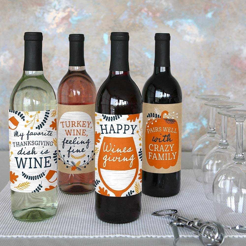 Happy Thanksgiving - Fall Harvest Party Decorations for Women and Men - Wine Bottle Label Stickers - Set of 4 is backordered and will ship as soon as it is back in stock.