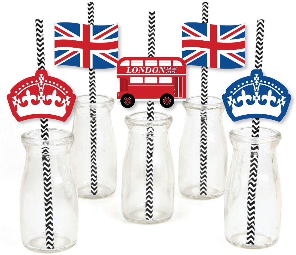 Cheerio, London - Paper Straw Decor - British UK Party Striped Decorative Straws - Set of 24