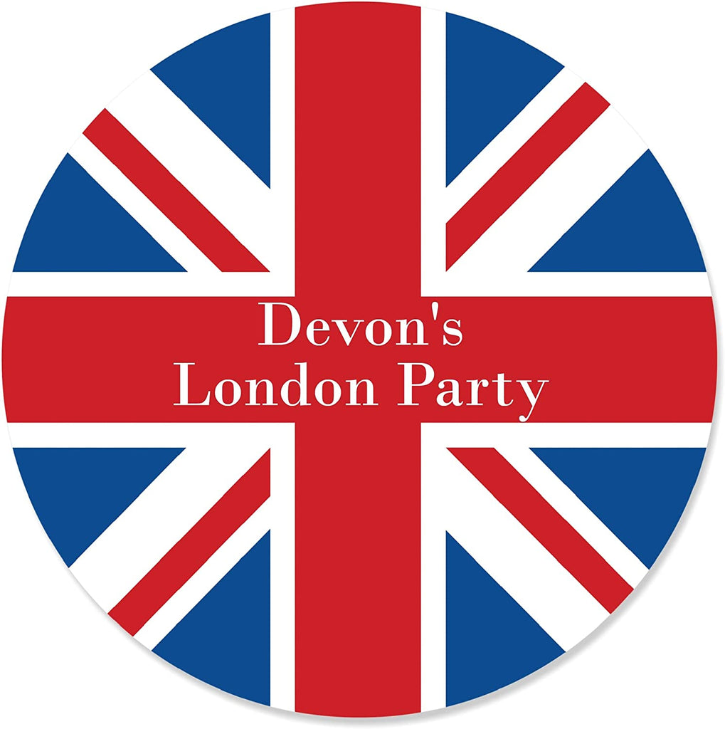 Personalized Cheerio, London - Custom British UK Party Favor Circle Sticker Labels - Custom Text - 24 Count