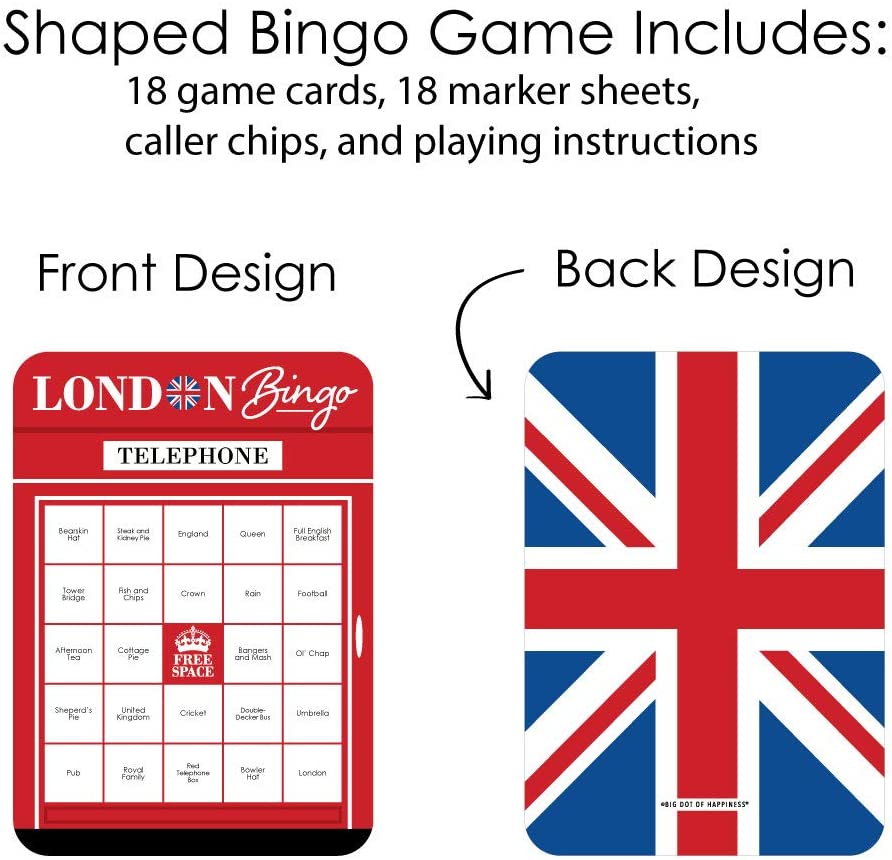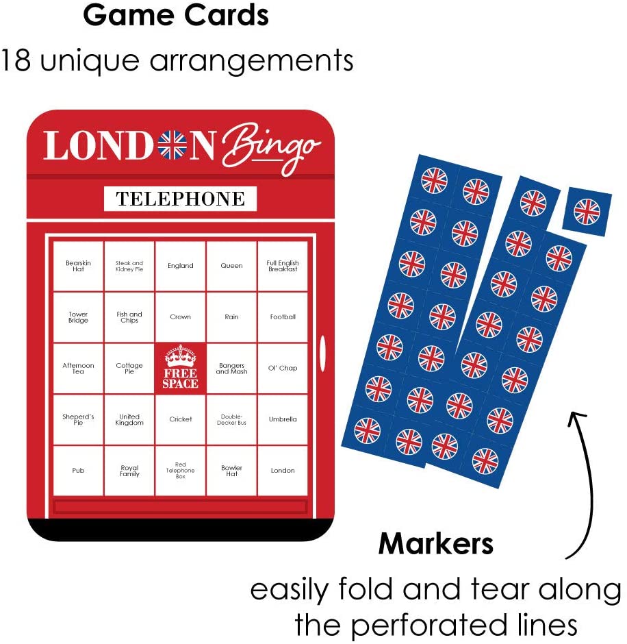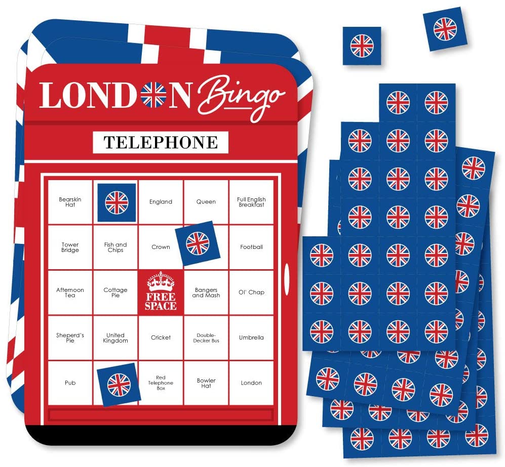 Cheerio, London - Bingo Cards and Markers - British UK Party Bingo Game - Set of 18 is backordered and will ship as soon as it is back in stock.