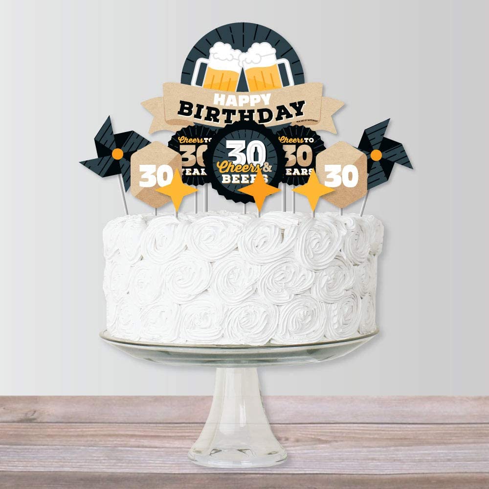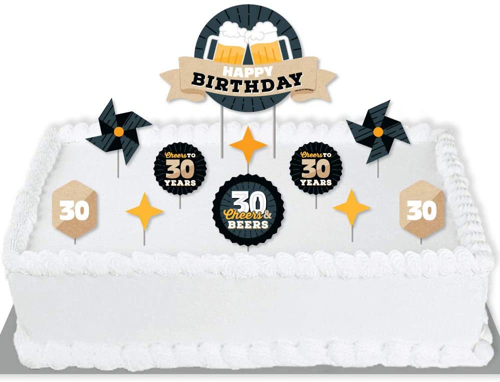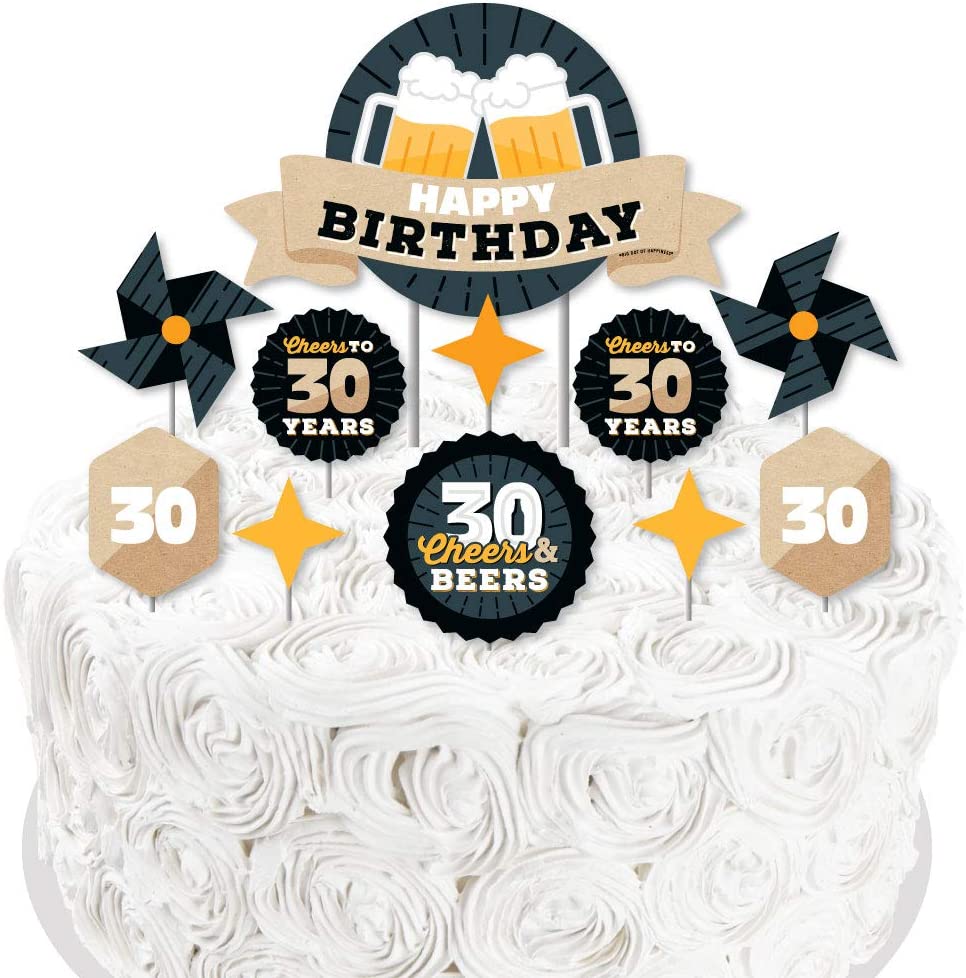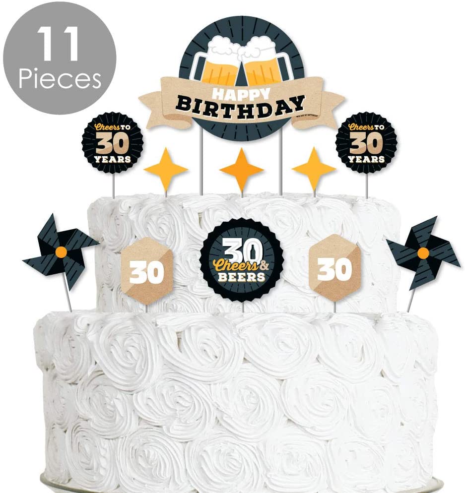 Cheers and Beers to 30 Years - Birthday Party Cake Decorating Kit - Happy Birthday Cake Topper Set - 11 Pieces