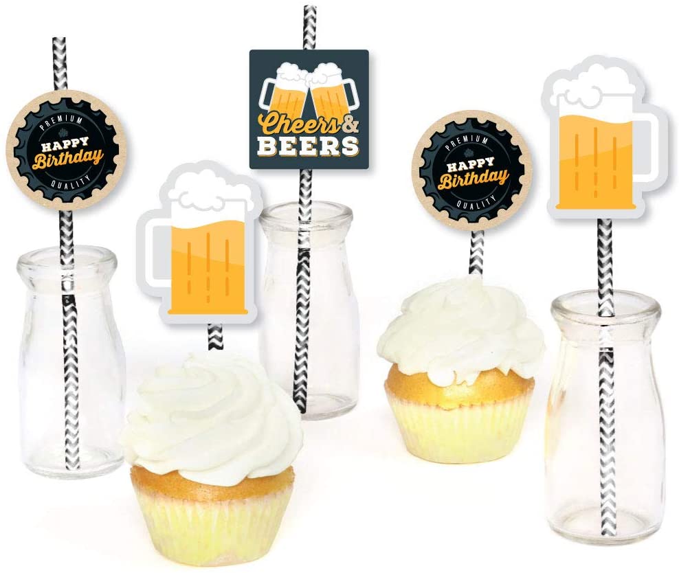 Cheers and Beers Happy Birthday - Paper Straw Decor - Birthday Party Striped Decorative Straws - Set of 24 is backordered and will ship as soon as it is back in stock.