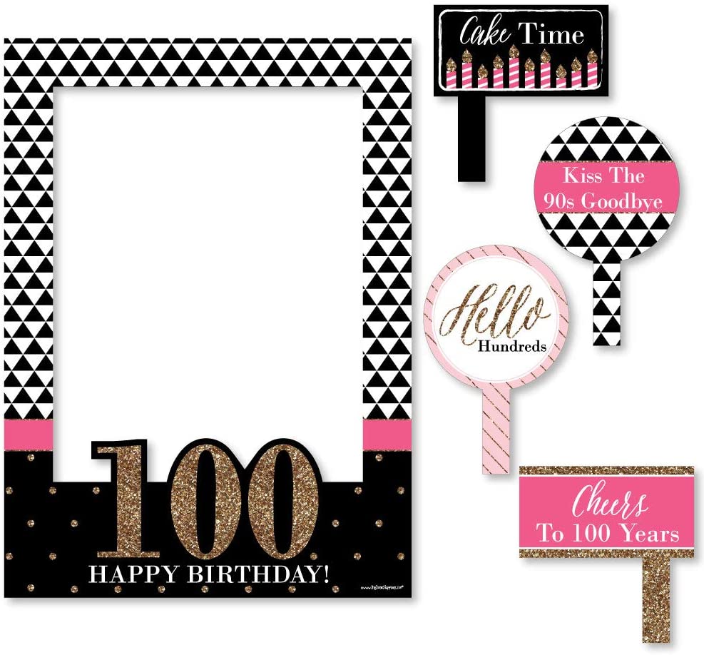 Chic 100th Birthday - Pink, Black and Gold - Birthday Party Selfie Photo Booth Picture Frame & Props
