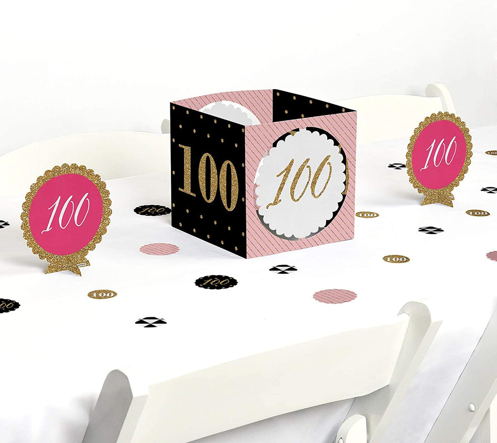 Chic 100th Birthday - Pink, Black and Gold - Birthday Party Centerpiece & Table Decoration Kit
