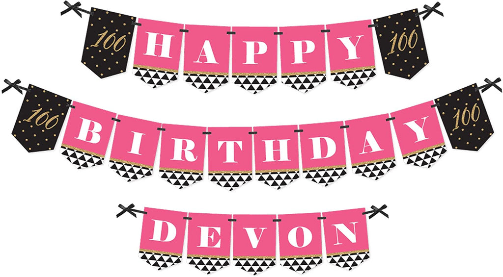 Custom Chic 100th Birthday - Pink, Black and Gold - Personalized Birthday Party Bunting Banner & Decorations - Happy Birthday Custom Name Banner