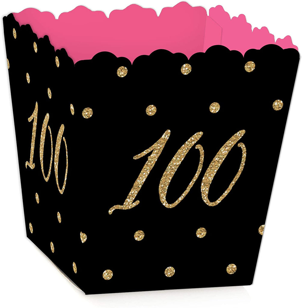 Chic 100th Birthday - Pink, Black and Gold - Birthday Party Favor Popcorn Treat Boxes - Set of 12
