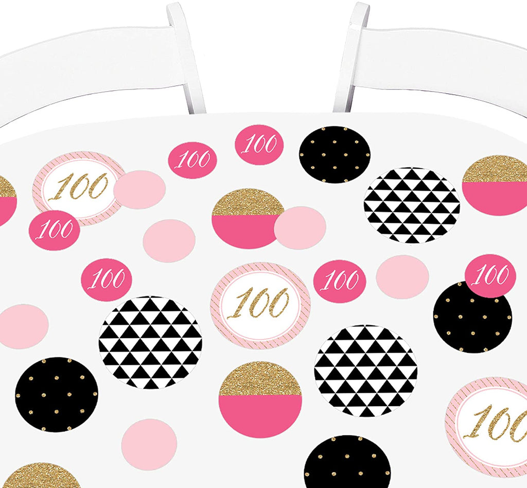 Chic 100th Birthday - Pink, Black and Gold - Birthday Party Giant Circle Confetti - Party Decorations - Large Confetti 27 Count