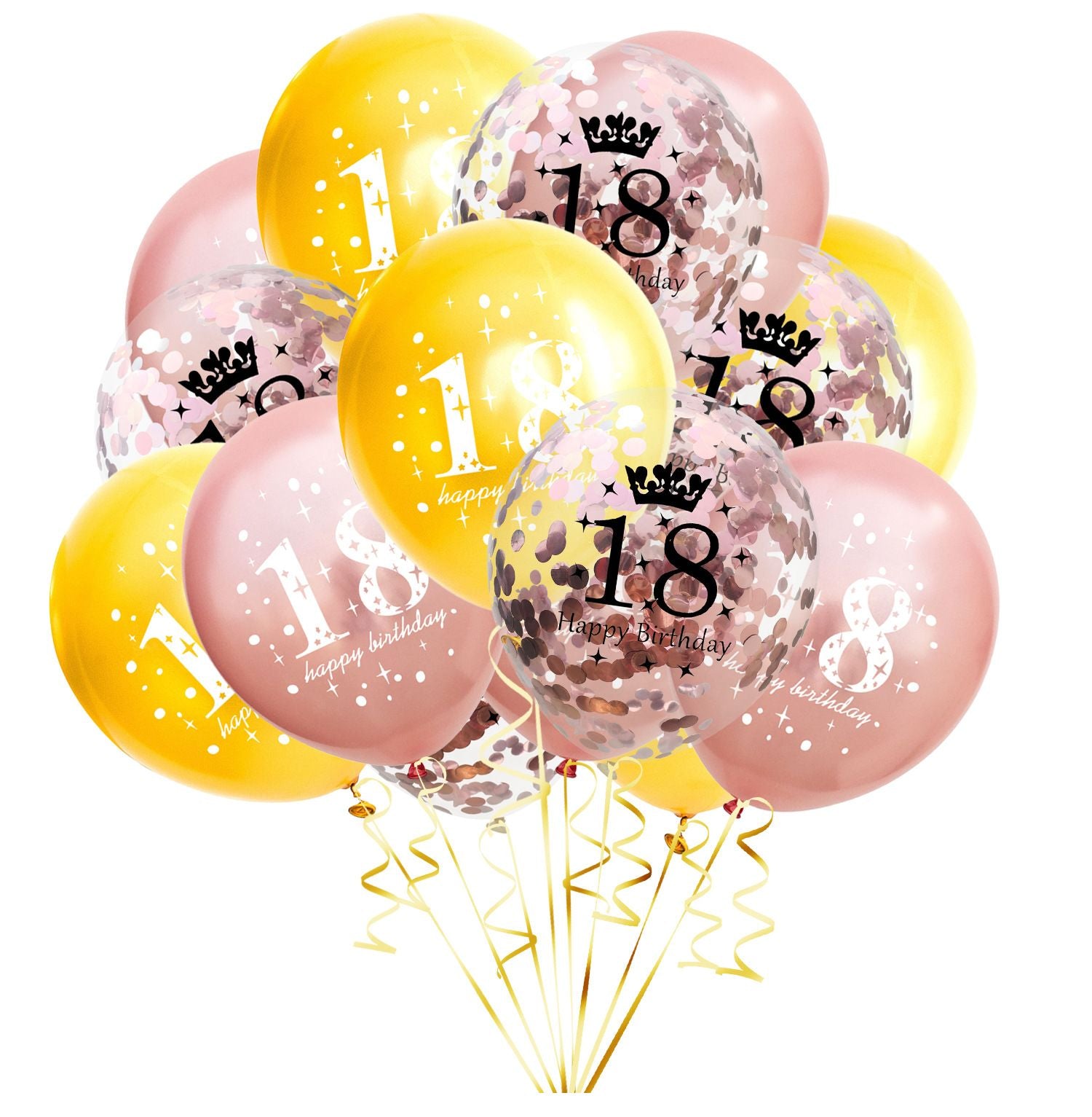 15 Packs Confetti Balloons 12 Inch Latex Clear Birthday Balloons (18 years old) - With Helium