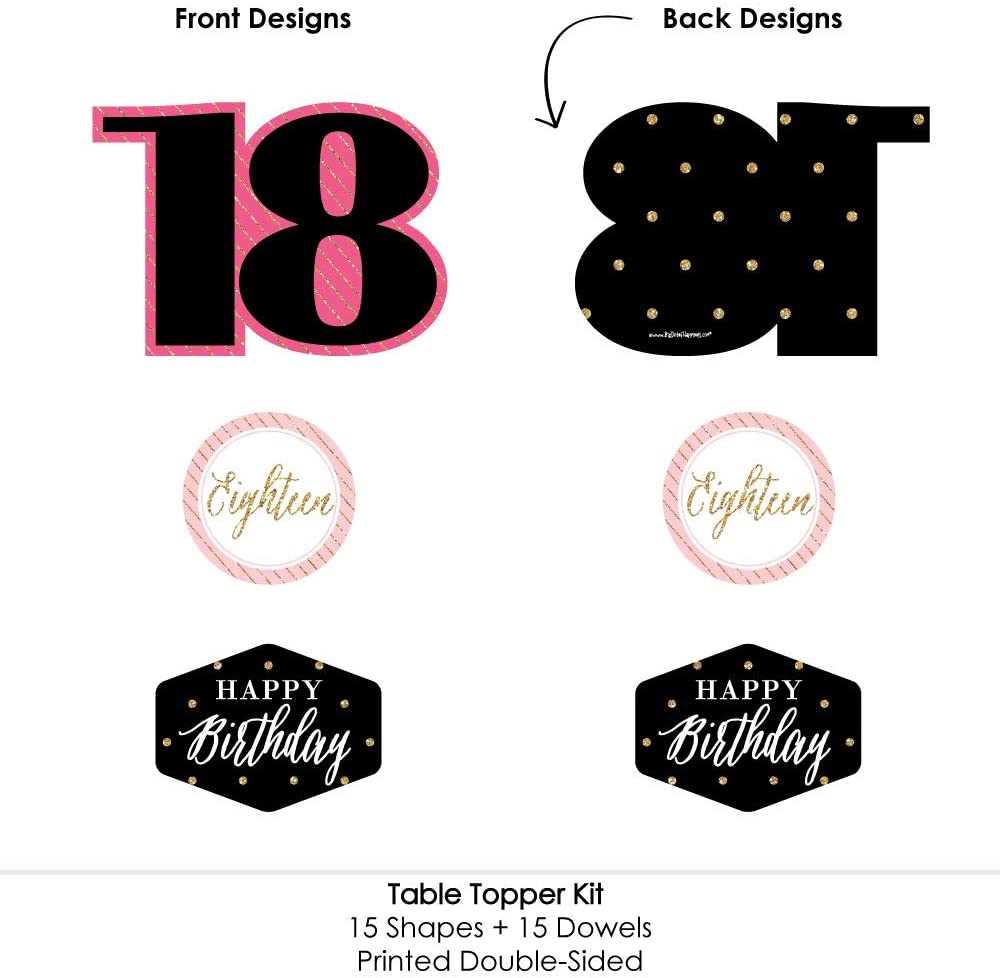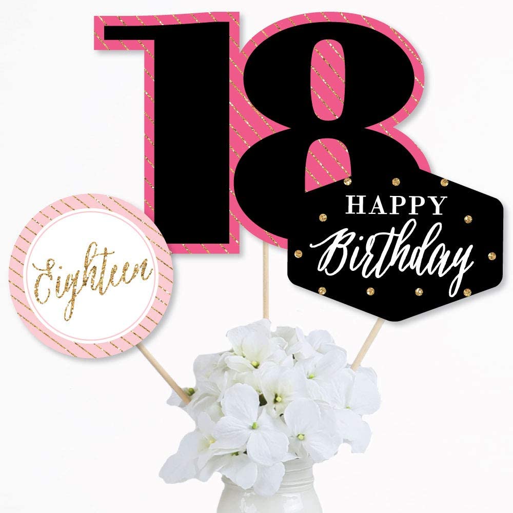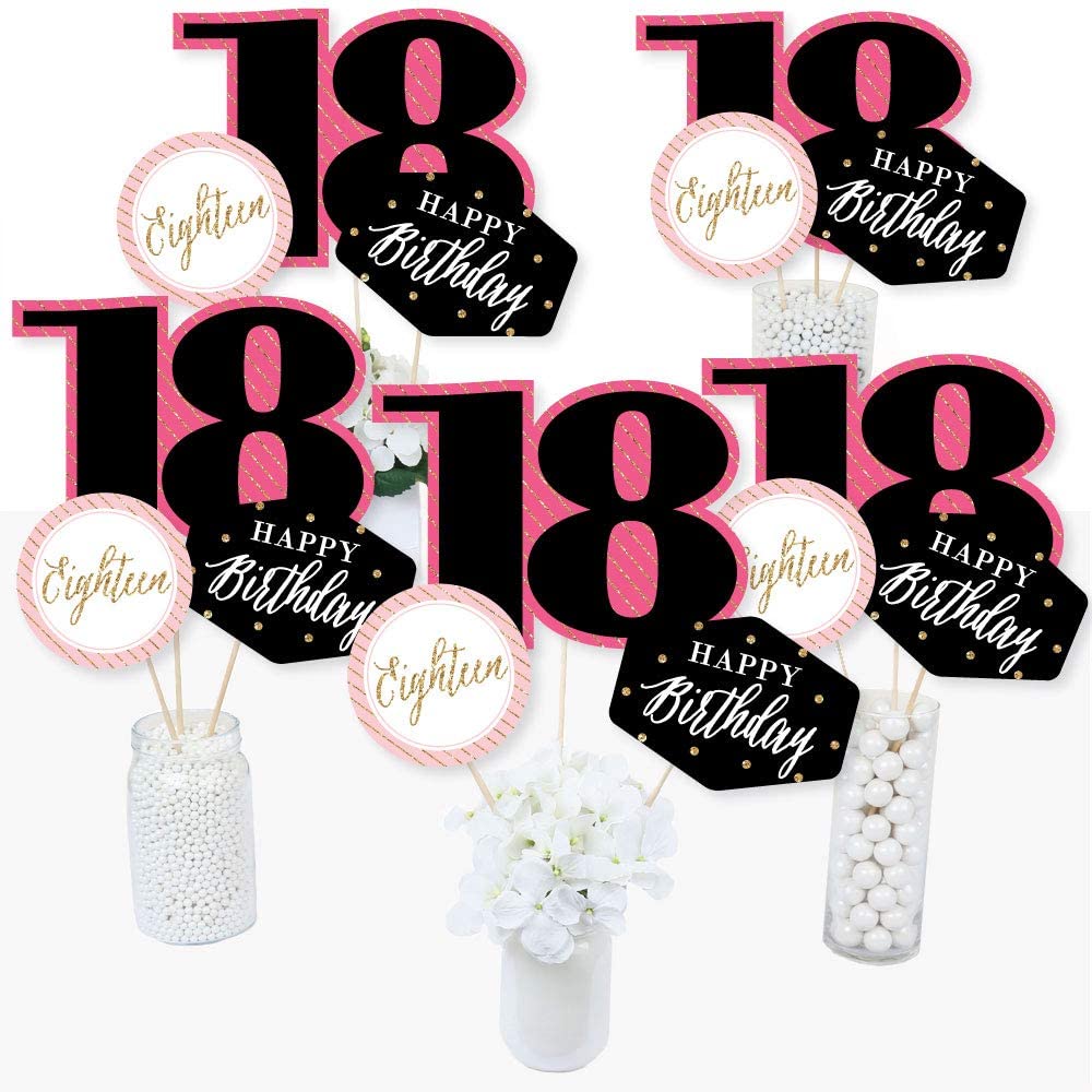 Chic 18th Birthday - Pink, Black and Gold - Birthday Party Centerpiece Sticks - Table Toppers - Set of 15 is backordered and will ship as soon as it is back in stock.