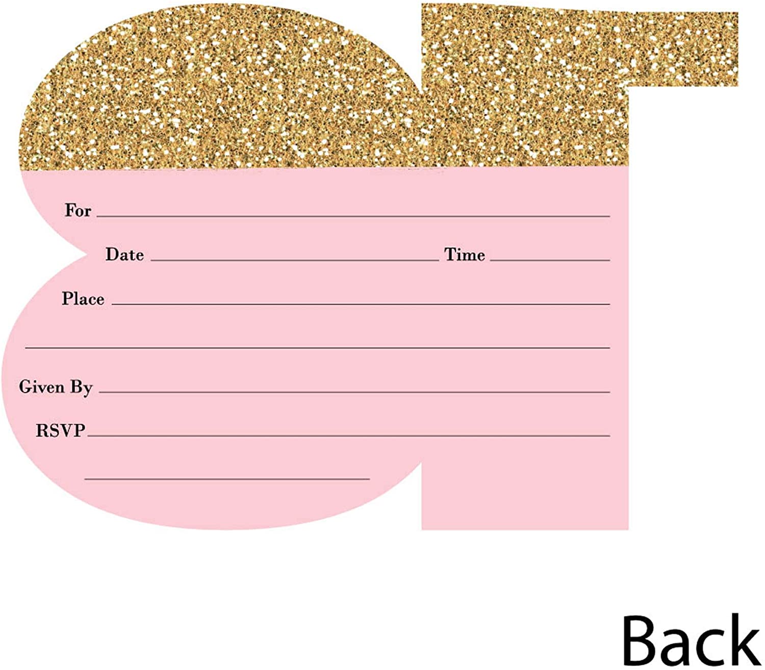 Chic 18th Birthday - Pink, Black and Gold - Shaped Fill-In Invitations - Birthday Party Invitation Cards with Envelopes - Set of 12