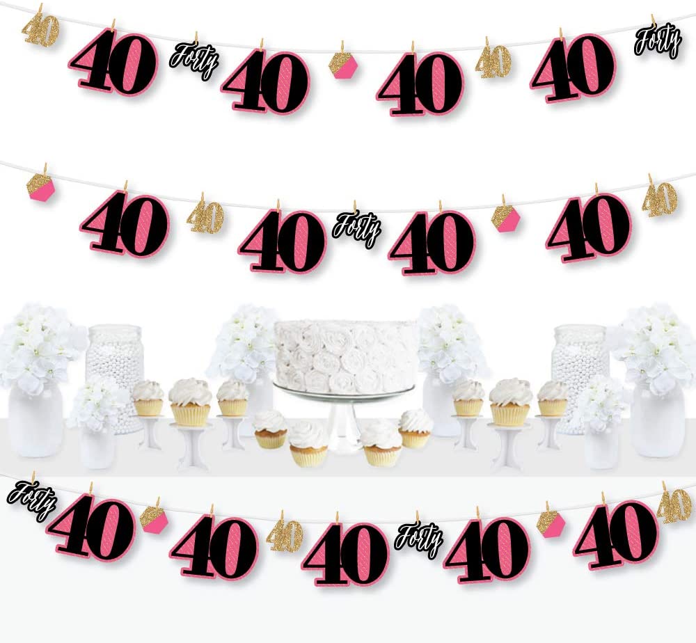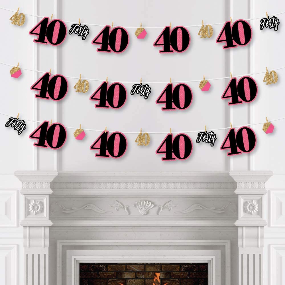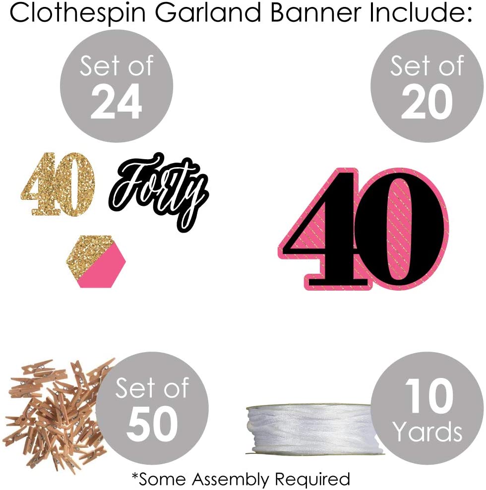 • PREMIUM PARTY DECORATION: Chic 40th Birthday - Pink Black and Gold large cut-outs are professionally printed double-sided. Small cut-outs are professionally printed with coordinating pattern on back, and all on sturdy cardstock paper with a photo-like shine. They are then individually cut, inspected and carefully packaged. Chic 40th Birthday - Pink Black and Gold clothespin garland banner is a 44-piece DIY kit that can be used in many ways.