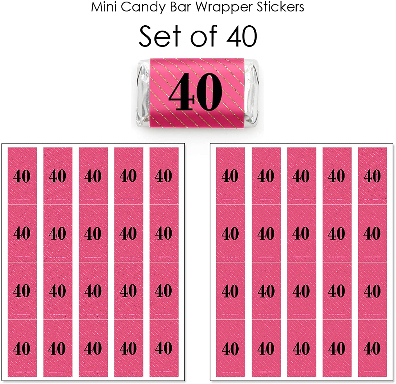 Chic 40th Birthday - Pink, Black and Gold - Mini Candy Bar Wrapper Stickers - Birthday Party Small Favors - 40 Count is backordered and will ship as soon as it is back in stock.