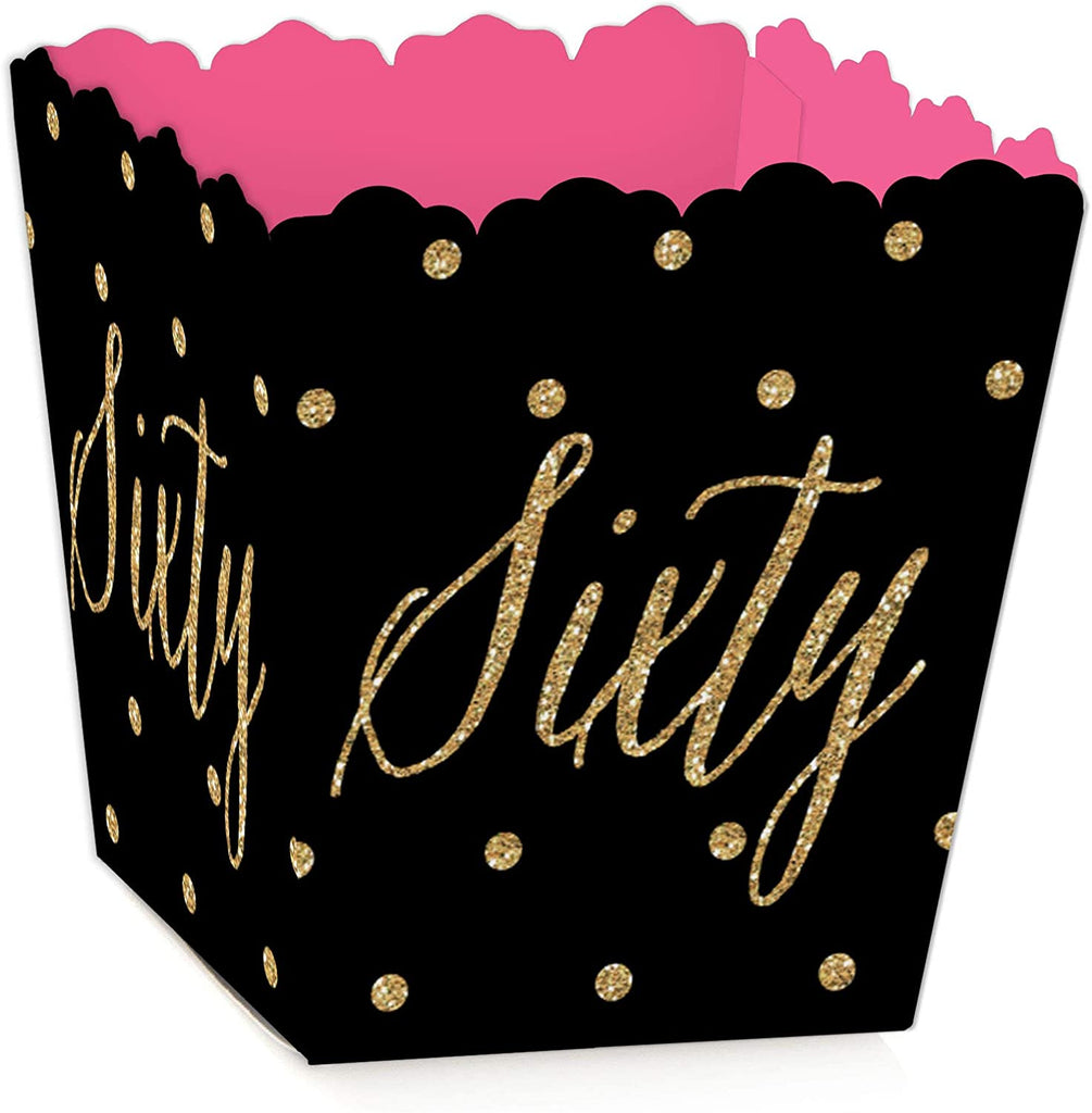 Chic 60th Birthday - Pink, Black and Gold - Birthday Party Favor Popcorn Treat Boxes - Set of 12