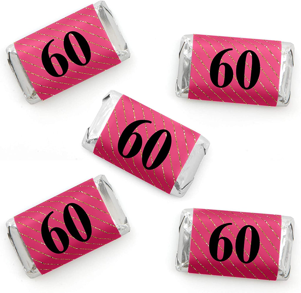Chic 60th Birthday - Pink, Black and Gold - Mini Candy Bar Wrapper Stickers - Birthday Party Small Favors - 40 Count
