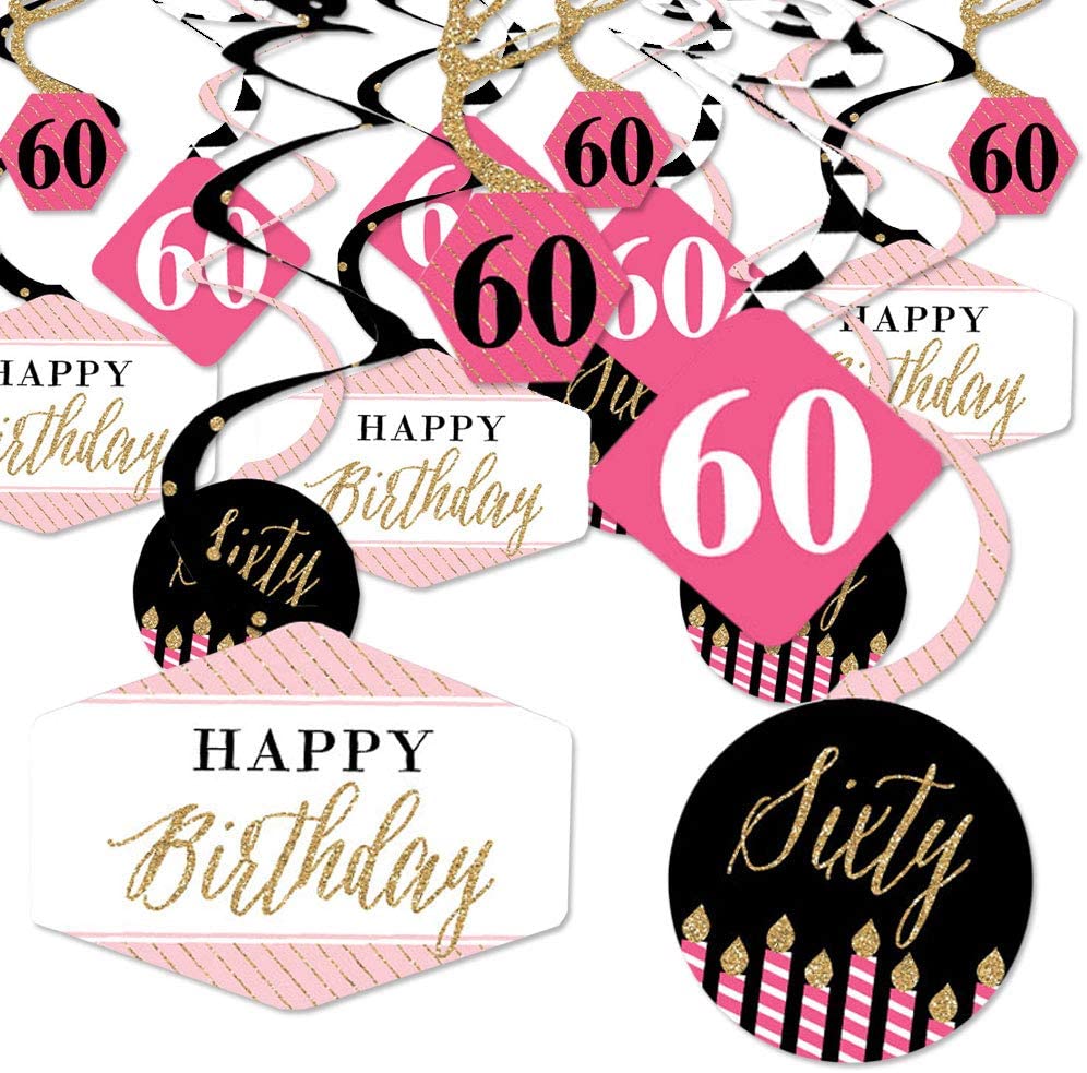 Chic 60th Birthday - Pink, Black and Gold - Birthday Party Hanging Decor - Party Decoration Swirls - Set of 40