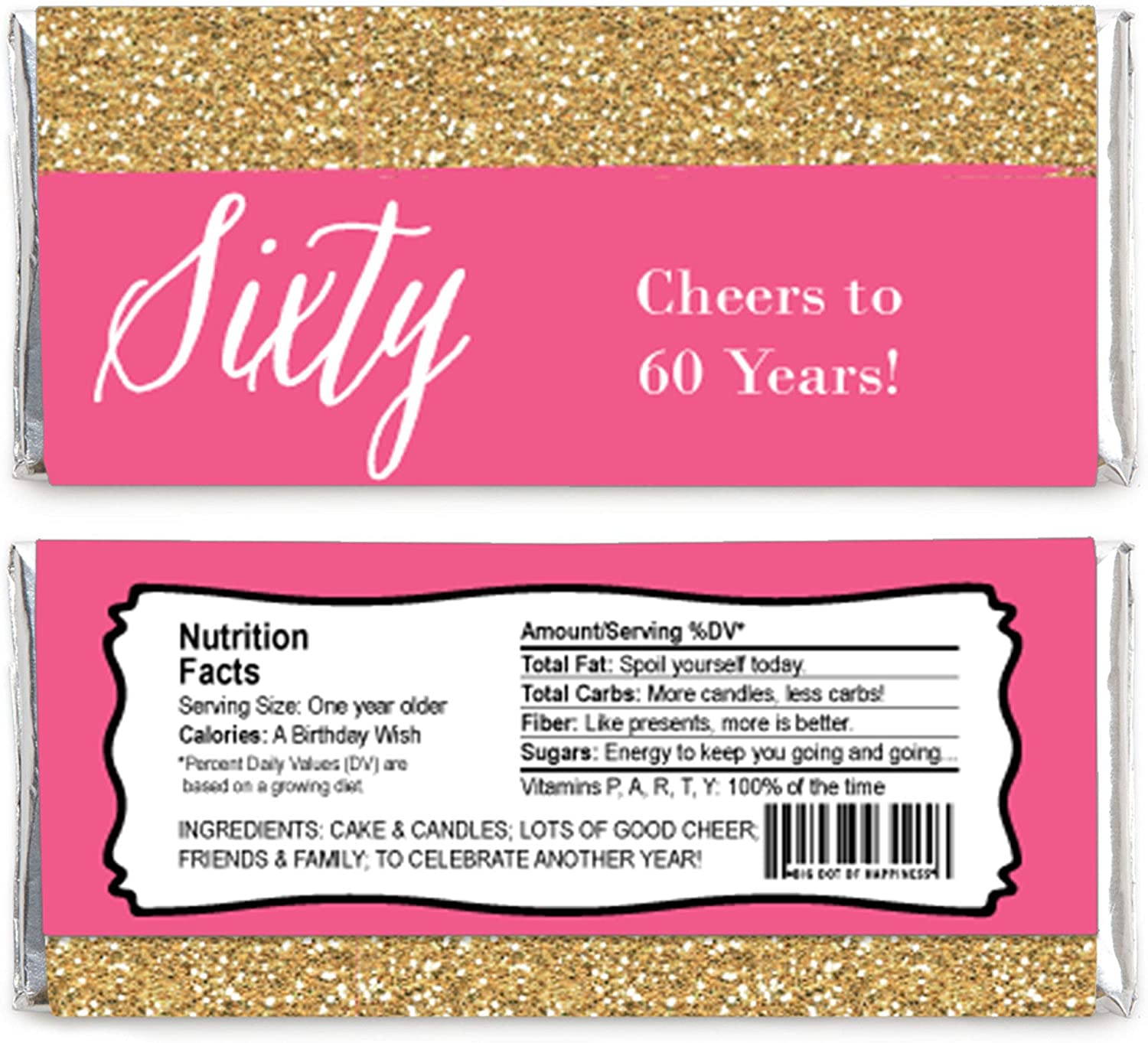 Chic 60th Birthday - Pink and Gold - Candy Bar Wrappers Birthday Party Favors - Set of 24 is backordered and will ship as soon as it is back in stock.