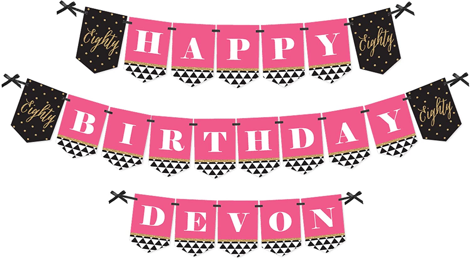 Custom Chic 80th Birthday - Pink, Black and Gold - Personalized Birthday Party Bunting Banner & Decorations - Happy Birthday Custom Name Banner is backordered and will ship as soon as it is back in stock.