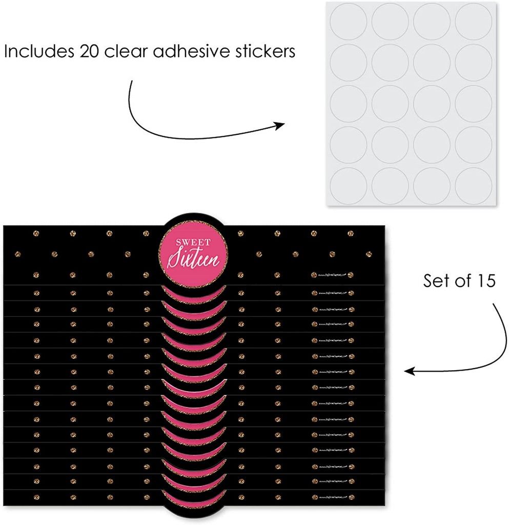 Chic 16th Birthday - Pink, Black and Gold - DIY Party Supplies - Birthday Party DIY Wrapper Favors & Decorations - Set of 15 is backordered and will ship as soon as it is back in stock.