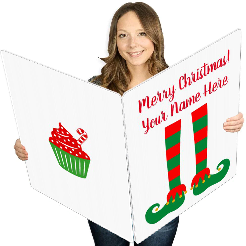Christmas card with funny elf feet Giant Greeting Card - 16.5 x 22 inches is backordered and will ship as soon as it is back in stock.