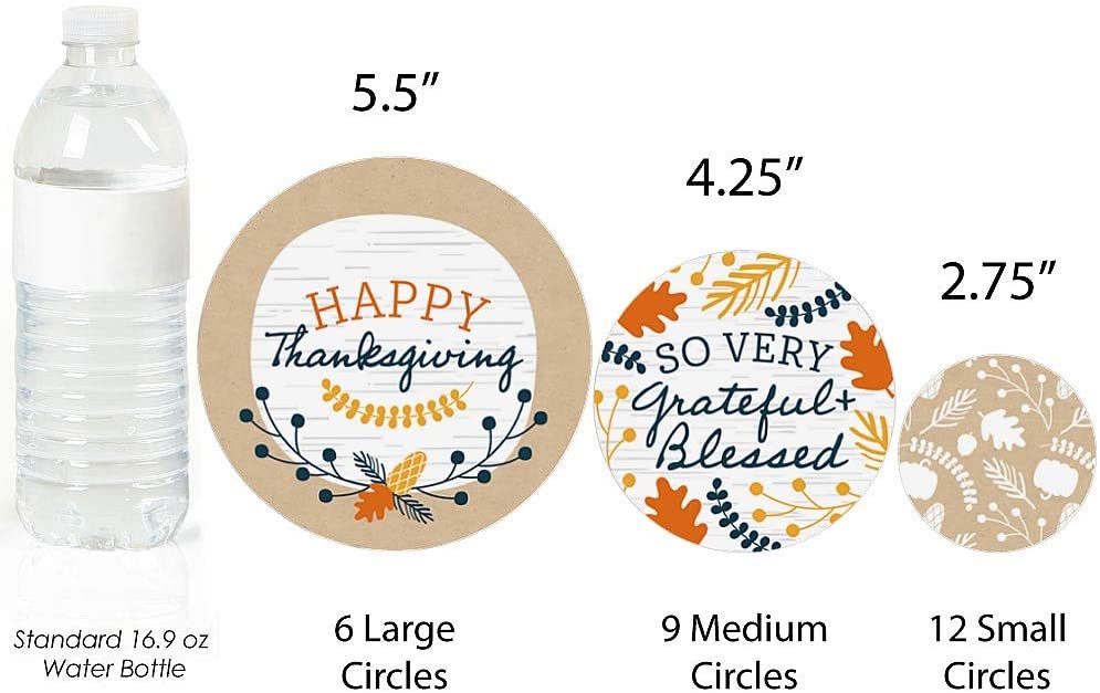 • Happy Thanksgiving giant circle confetti SIZE 5.5 inches large circles, six qty; 4.25 inches medium circles, nine qty; and 2.75 inches small circles, twelve qty. The unique design and large size make these autumn party decorations an impressive addition to any fall harvest event.